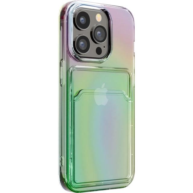 ■商品名:iPhone 14 Pro 6.1インチ 用 ポケット付 抗菌 ソフトケース バックパネルケース オーロラ