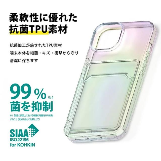 iPhone 14 Pro 6.1インチ 用 ポケット付 抗菌 ソフトケース バックパネルケース オーロラ PGA PG-22QCTP02AR