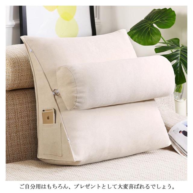 三角クッション 背もたれ クッション ベッドクッション ソファークッション 三角 枕 座布団 足枕 座椅子 腰枕 腰クッション ポケット付き 北欧 洗える 洗濯可