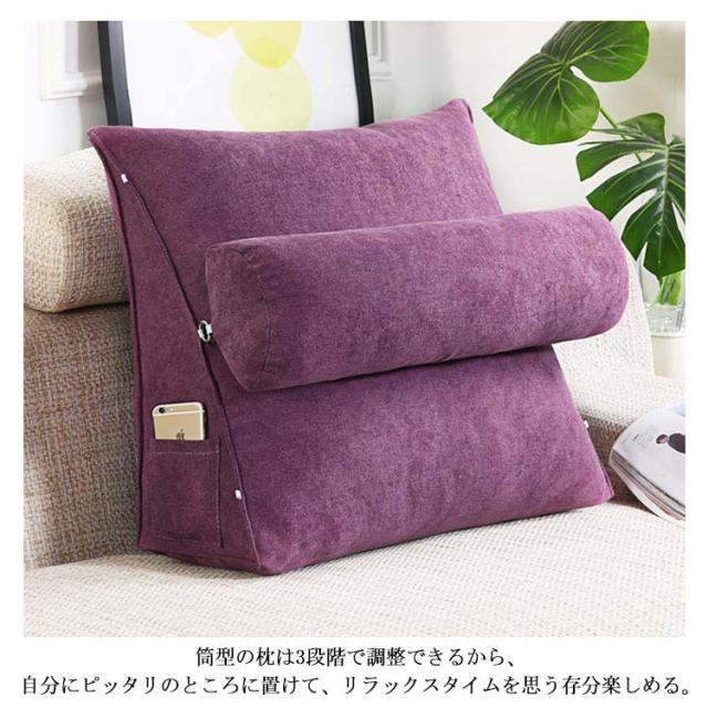 | くつろぎタイムをより快適に ソファやベッドに置いて、読書やゲームなどする時、枕にしたり肘置きにしたり、首や腰を支えてくれる三角クッション。 筒型の枕は3段階で調整できるから、自分にピッタリのところに置けて、リラックスタイムを思う存分楽しめる。 両サイドにはスマホや小物入れにとても便利なポケット付き。 カバーを外して洗える可能でお手入れ楽チン。 ご自分用はもちろん、プレゼントとして大変喜ばれるでしょう。 | |
