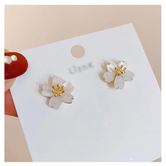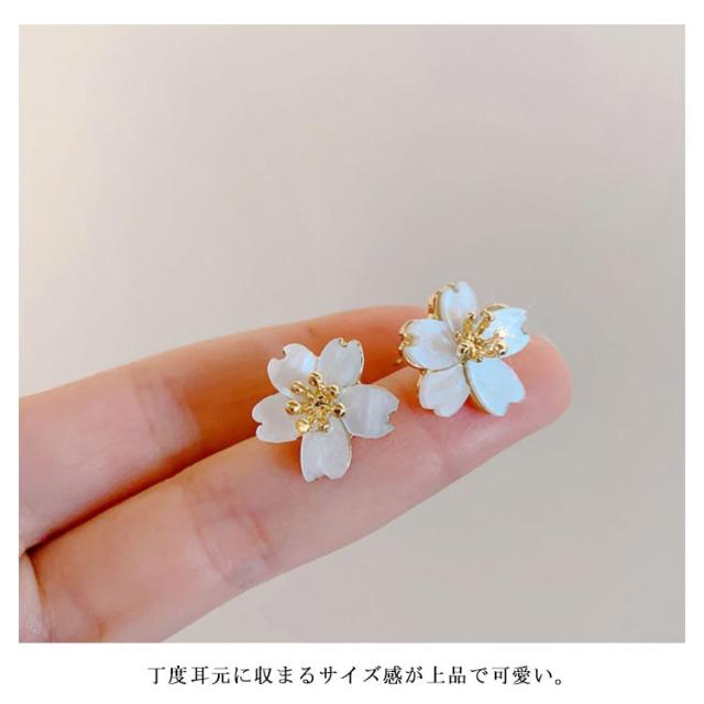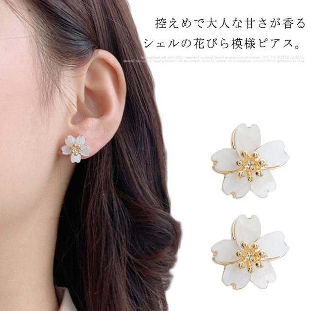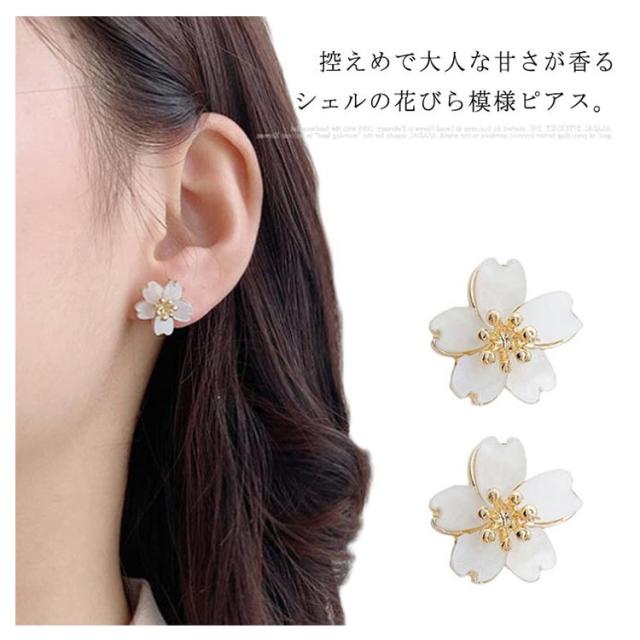 ミニシェル フラワーピアス ピアス シルエピアス ビジュー アクセサリー レディースピアス 花 上品 2次会 パーティー レディース 大人っぽい シンプル かわいい