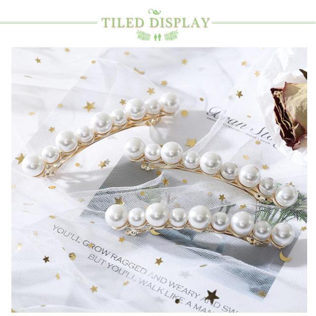 | 可憐な大小粒パールが印象的な、清楚なバレッタが登場。 上品なお嬢さんにしてくれる大小粒パールがライン状に並んでおります。 サイドに留めたり前髪をまとめたりと、使い方はたくさん♪ 大人っぽくも可愛くも仕上がるパール小物はヘアでも取り入れて、エレガントさをアピールしてね☆ | |