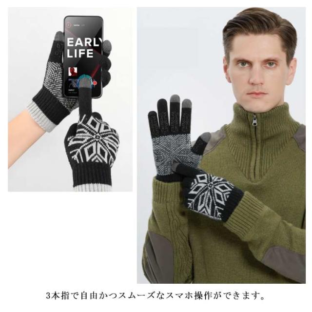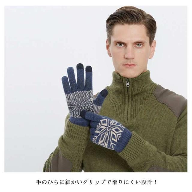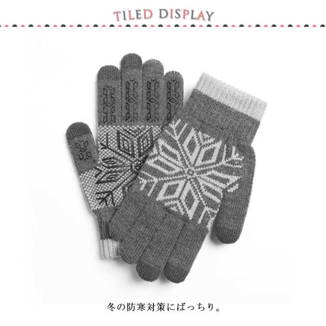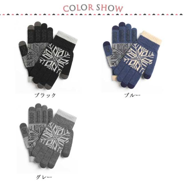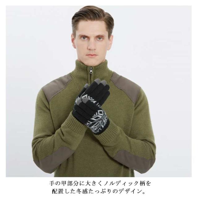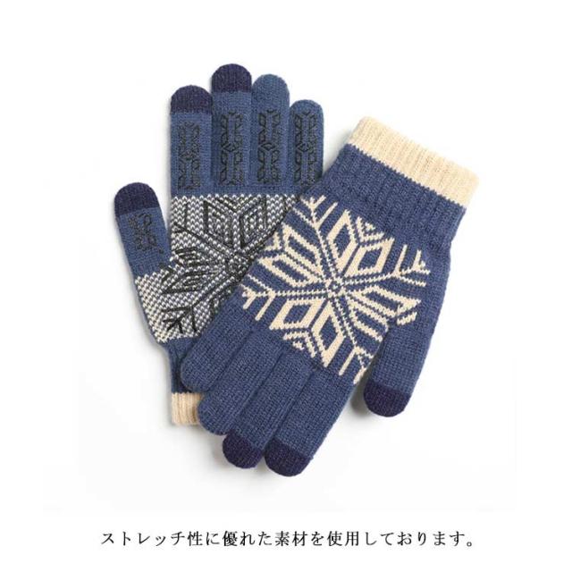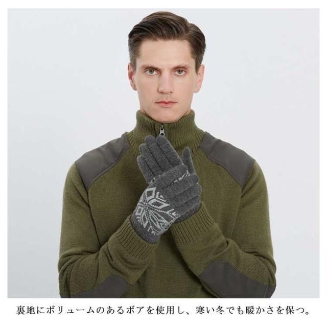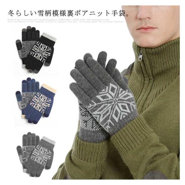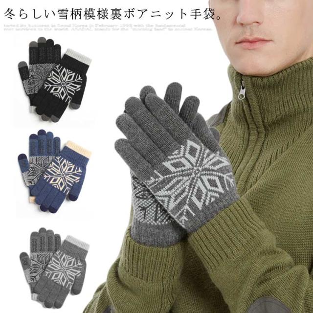送料無料 手袋 レディース メンズ ニット 裏ボア手袋 男女兼用 リブニット スマホ手袋 グローブ 裏ボア ノルディック柄 雪柄 厚手 防寒対策 あったか 暖かい 柔らかい かわいい 通勤 通学