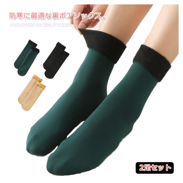 送料無料 ソックス レディース 靴下 2足セット 裏ボア 裏ボアソックス ルームソックス 部屋着 裏起毛 防寒 ふわふわ 伸縮性 厚手 無地 定番 万能アイテム シンプル 暖かい お洒落 秋冬