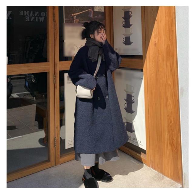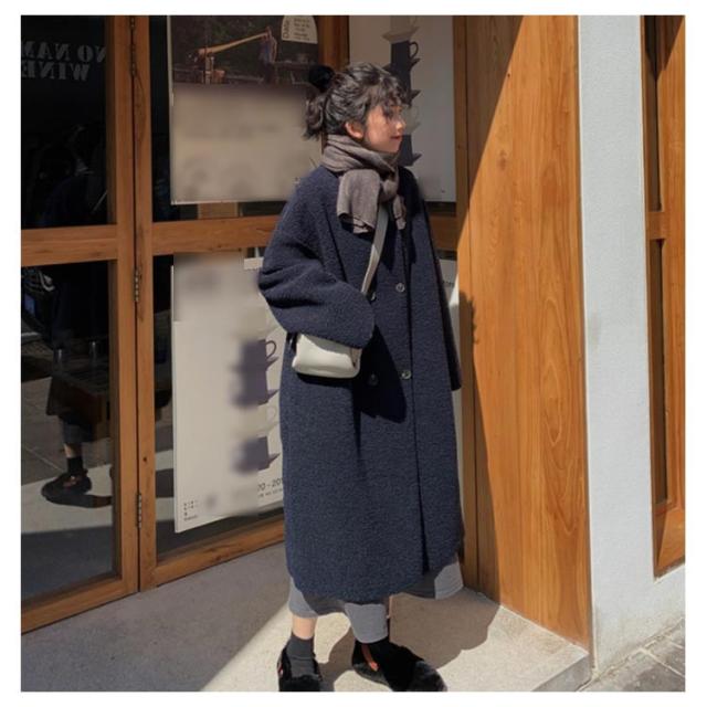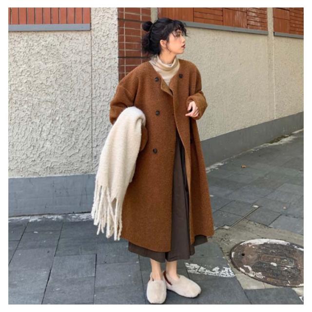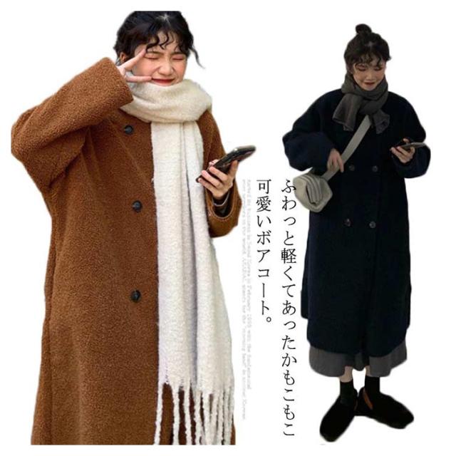 ノーカラー コート ボアコート ロング丈 ジャケット レディース ダブルボタン ロングコート オーバーサイズ ドロップショルダー あったか 防寒 通勤 お出かけ