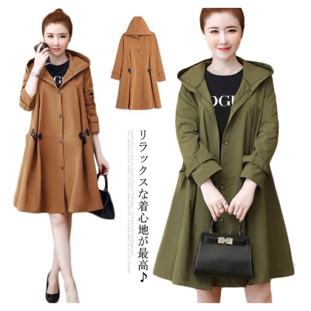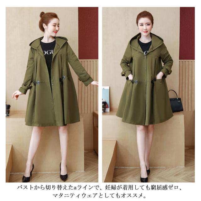 大きいサイズ アウター トレンチコート スプリングコート フード付き 羽織り マタニティウェア 妊娠 コーディガウン 通勤 お出かけ おしゃれ 秋冬 春