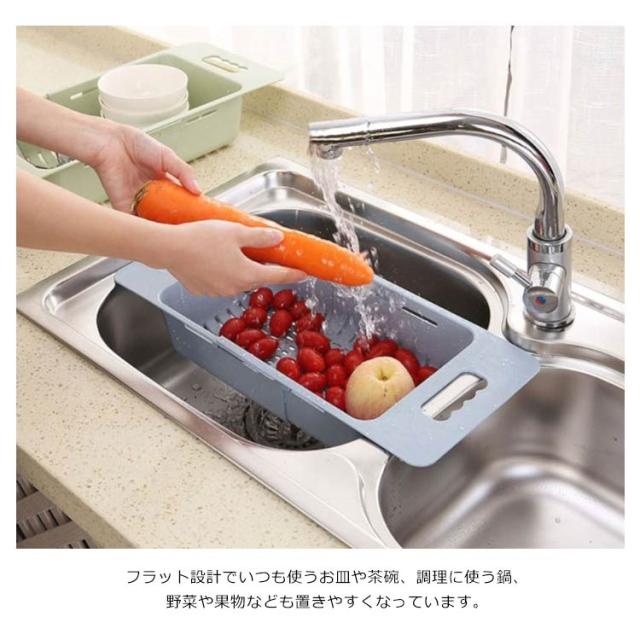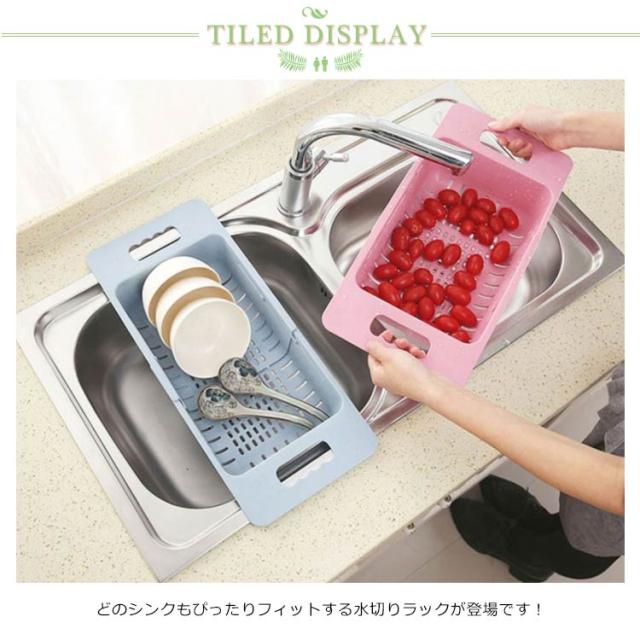 シンク上にフィット!伸縮水切りラック 水切り 水切りかご 水切りトレー 水切りバスケット かご シンク台 ディッシュラック 食器 収納 おしゃれ キッチン 雑貨 シンプル