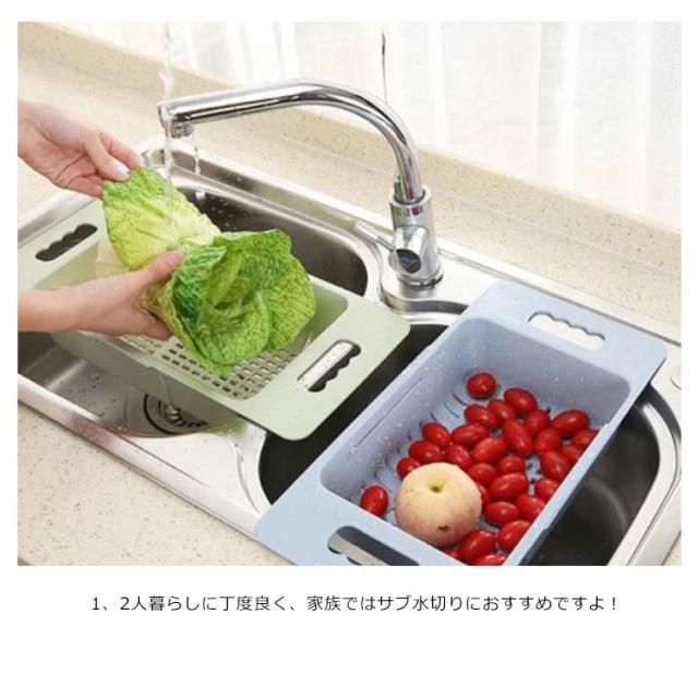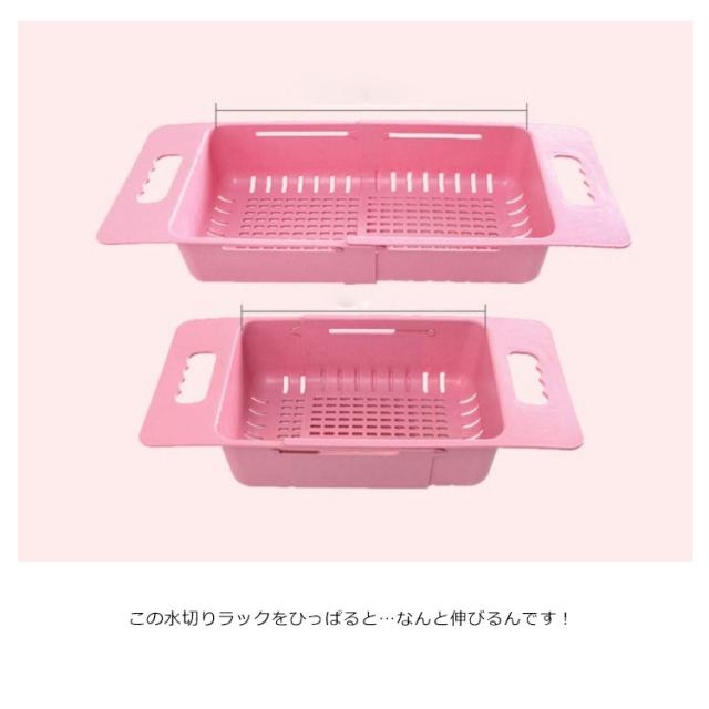 | どのシンクもぴったりフィットする水切りラックが登場です! この水切りラックをひっぱると…なんと伸びるんです! フラット設計でいつも使うお皿や茶碗、調理に使う鍋、野菜や果物なども置きやすくなっています。 また水切りだけではなく、フラットだから延長棚にして調理スペースとしても使えちゃうんです! 1、2人暮らしに丁度良く、家族ではサブ水切りにおすすめですよ! | |