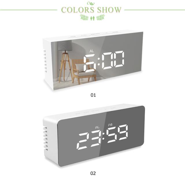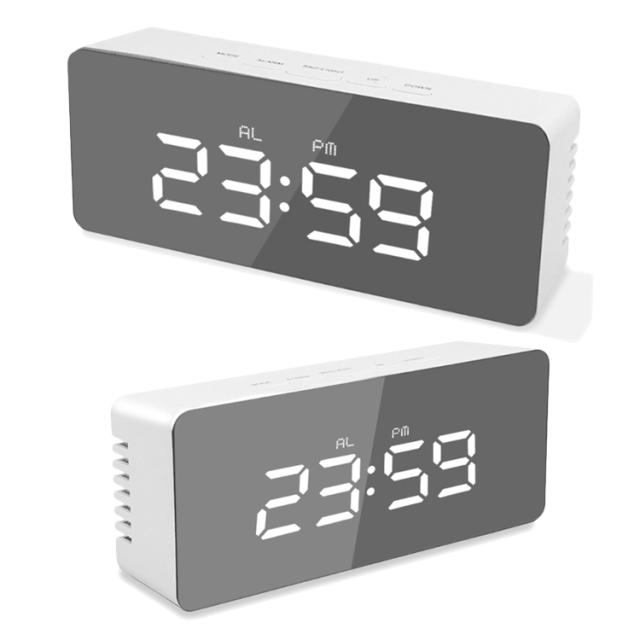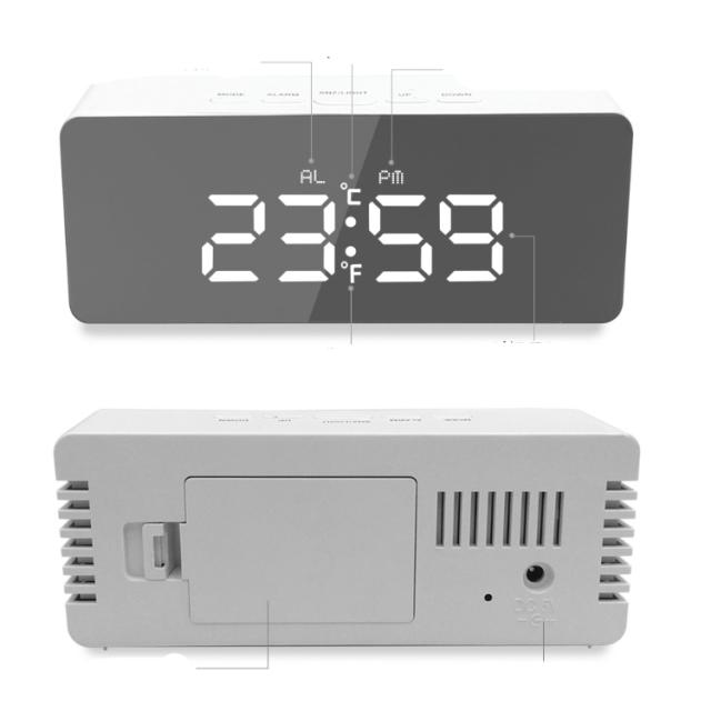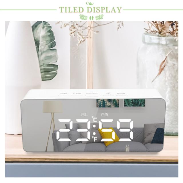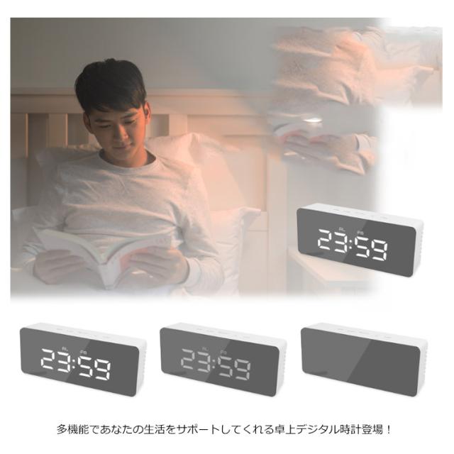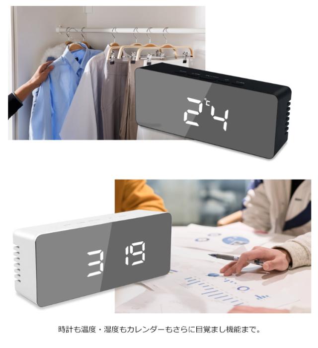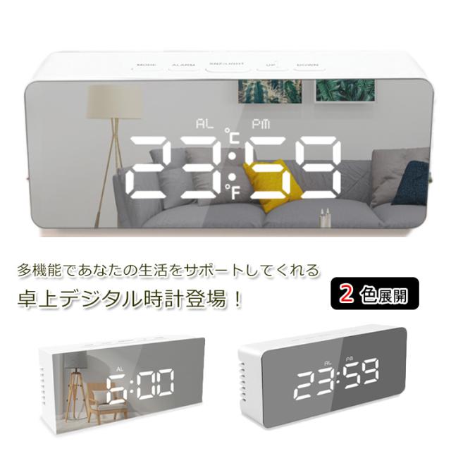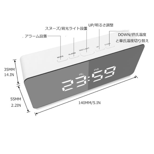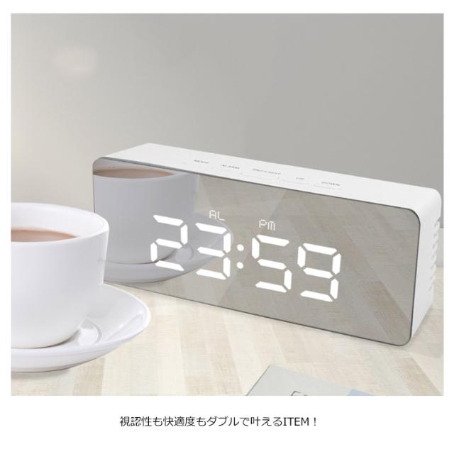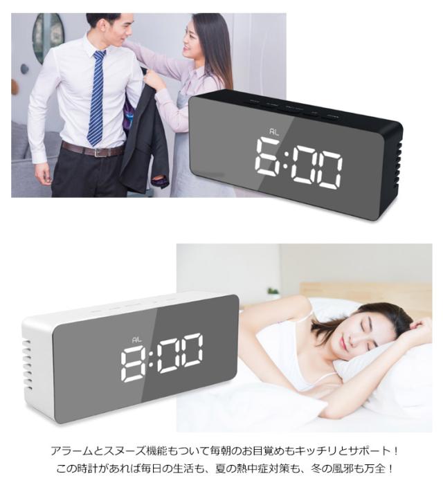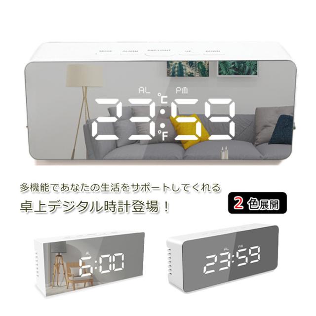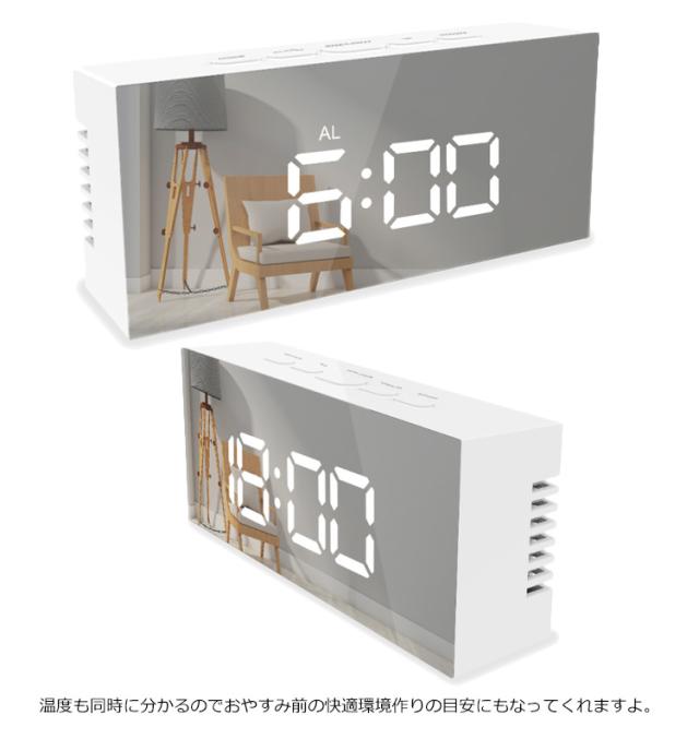 デジタル時計 置き時計 目覚まし時計 めざまし時計 アラーム カレンダー 表示 温度計 日付 スヌーズ 見やすい 静か 熱中症対策 風邪 LED鏡面 新生活 ギフト USB電源接口