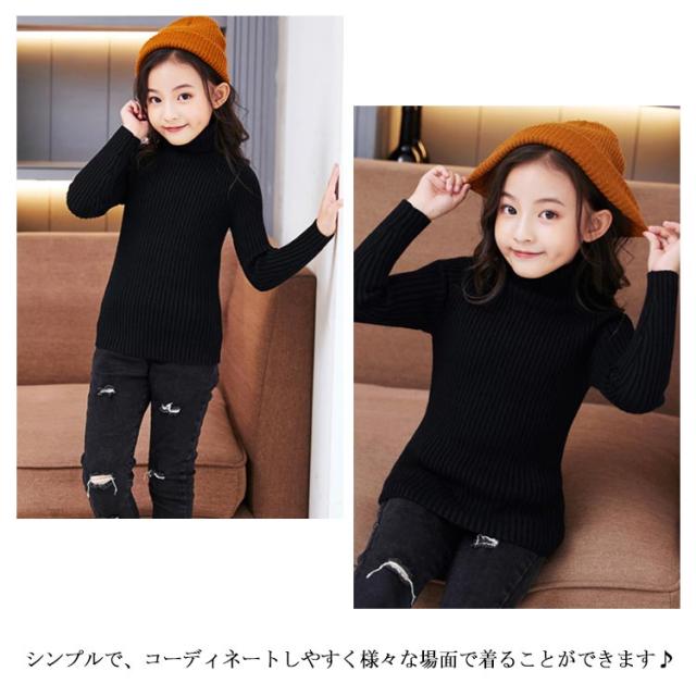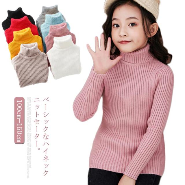 全8色!ニットセーター キッズ ニットトップス セーター 女の子 トップス ニット 長袖 ハイネック タートルネック 子供服 カジュアル 無地 おしゃれ 暖かい 冬 新作