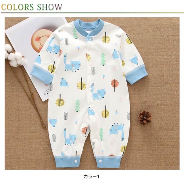 送料無料 キッズ ベビー ルームウェア 部屋着 パジャマ こども 子供服 男の子 女の子 長袖カバーオール 丸ネック スウェット 長袖 動物 59 66 73 80 90