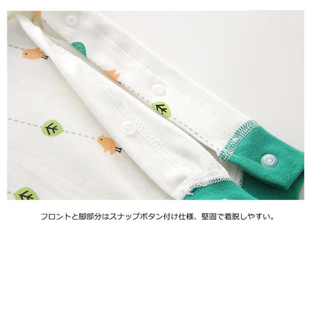 | 赤ちゃんのお肌に優しい長袖カバーオール。 ソフトなコットン100%素材を採用、赤ちゃんの肌に優しいです。 コットン100%リブの丸ネックデザイン。 フロントと脚部分はスナップボタン付け仕様、堅固で着脱しやすい。 袖口と裾口可愛い配色のリブ仕様。 全体的に“骨”が無い縫い目仕様、赤ちゃんの柔らかなお肌に優しい。 パジャマや部屋着、ルームウェア等としては重宝します。 | |