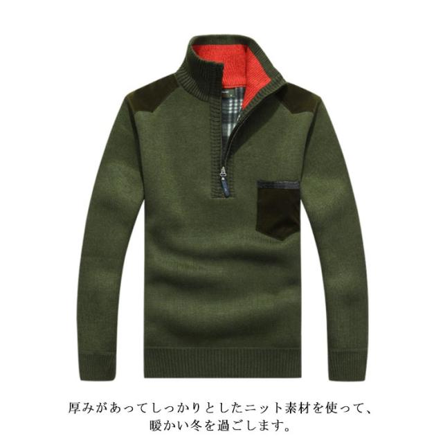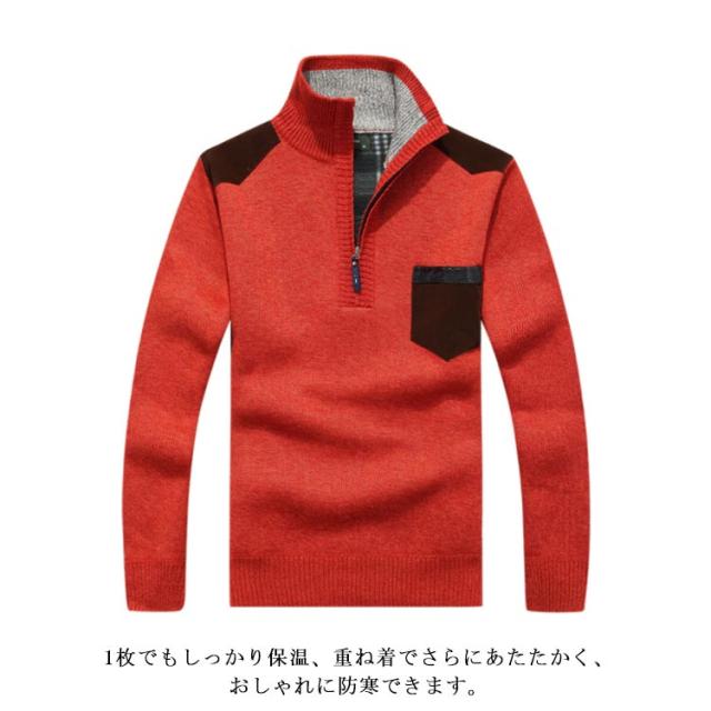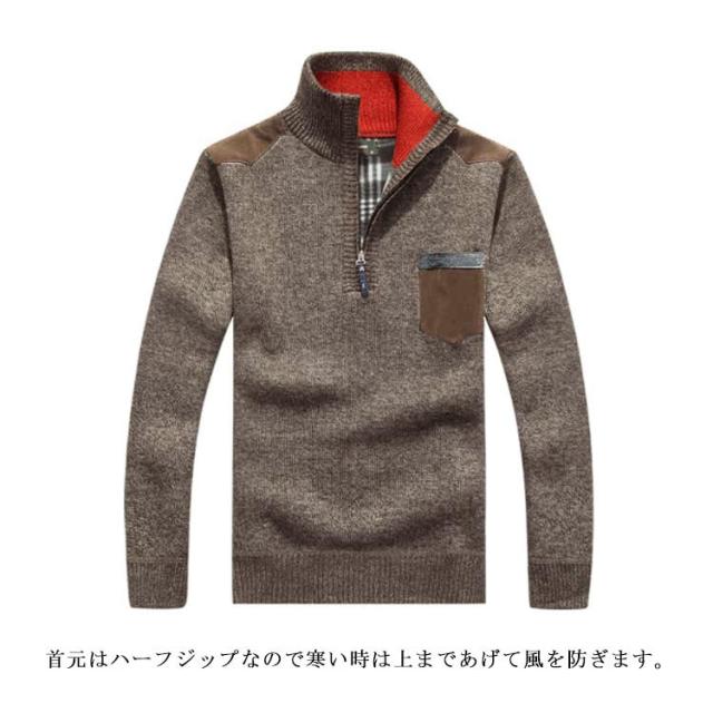 ニットセーター 裏起毛 ハーフジップ メンズ タートルネック トップス 長袖 セーター アウター 厚手 あったか 防寒着 保温 秋冬 カジュアル メンズファッション