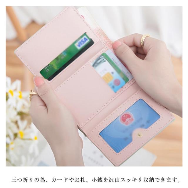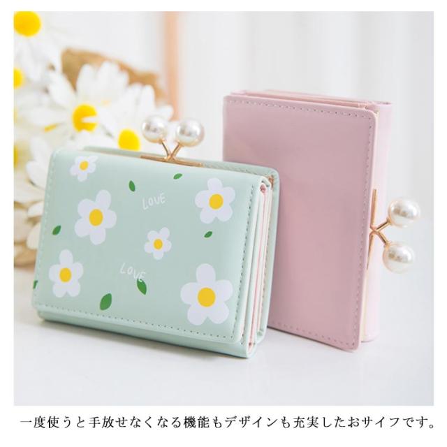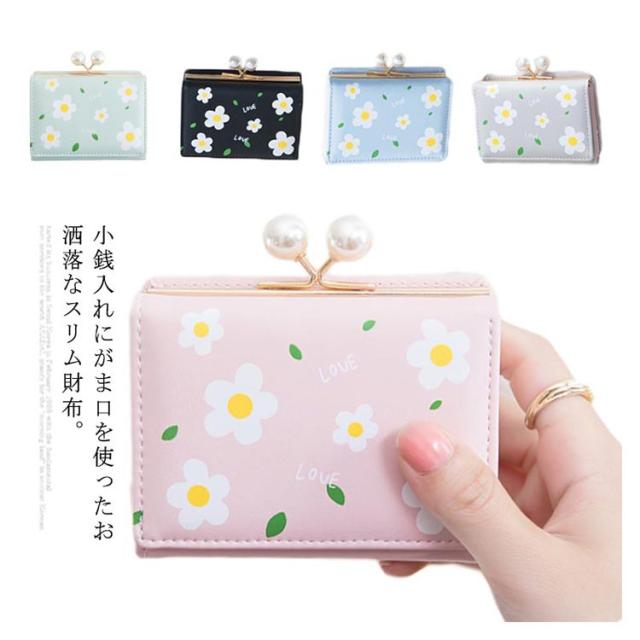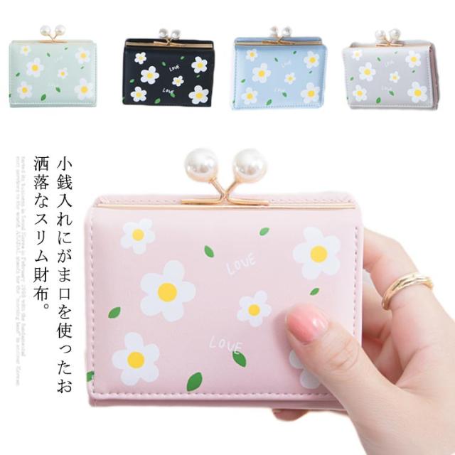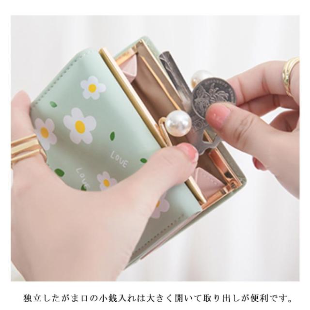送料無料 三つ折り財布 レディース がま口 財布 三つ折り ミニ財布 花柄 フラワー かぶせ 使いやすい がま口 ミニ ボックス型 カード入れ