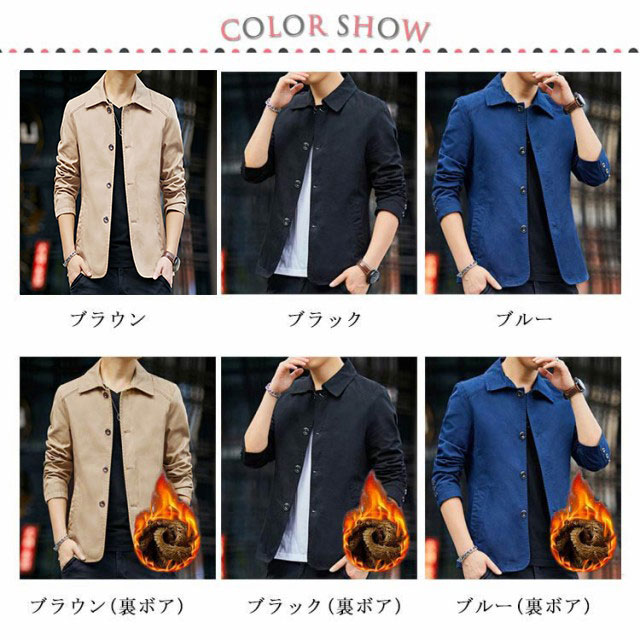 | 全3色×6サイズ!今季持っておきたい折り襟カジュアルコート。 上品さあるスタイリッシュなデザイン&細身シルエットが他を圧倒するカッコ良さです。 しっかりとハリのある綿混生地を採用し、通気性に優れて、しわにもなりにくいのが秘密。 暖かい裏ボア素材も追加で秋冬にも使える。 飽きのこないデザインでカジュアルからビジネスまで使えて、一枚あるととても便利なアウターです。 | |