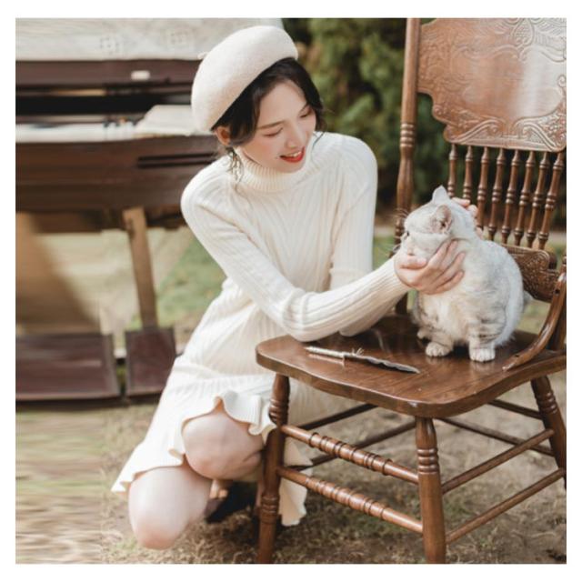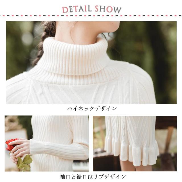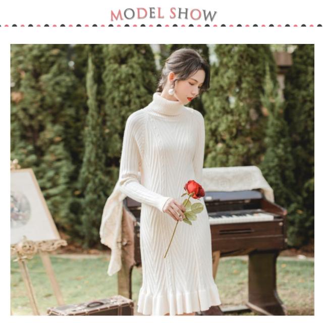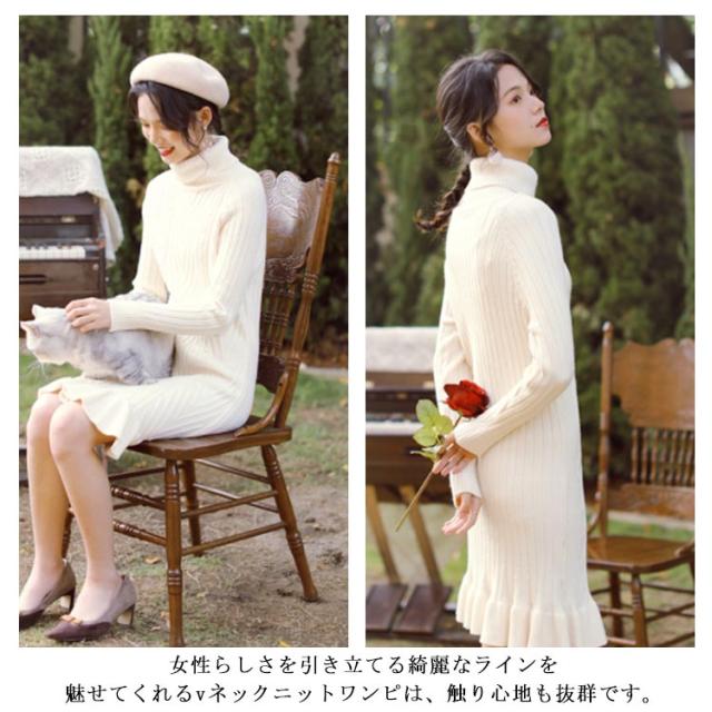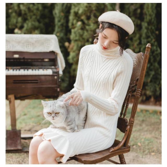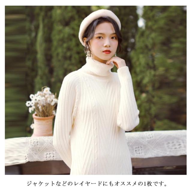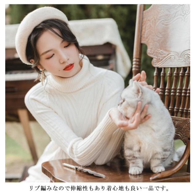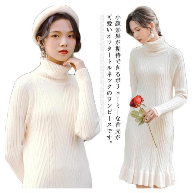 ニットワンピース タイトワンピース 膝丈 チュニック ワンピース タートルネック ハイネック リブニット レディース 無地 暖か フェミニン 通勤 通学 新作