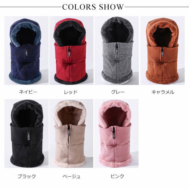 | 寒い時期のアウトドアにおすすめなネックウォーマーです。 裏地はふわふわなファー生地採用され、肌に優しく、お洒落に過ごします。 帽子とネックウォーマーのデザインので、冷たい風から完全防備できます。 前にファスナー付きなので、簡単に脱着できます。防風効果アップ! 着け心地が良く、おしゃれなデザインでどんなコーデとも相性抜群です | |