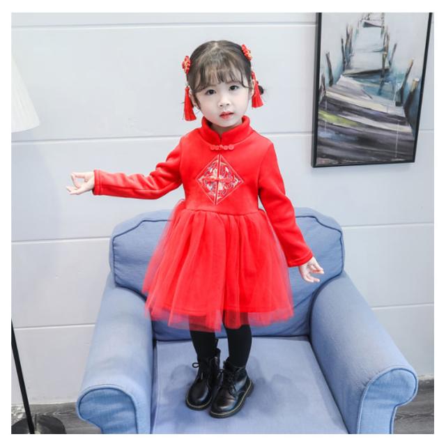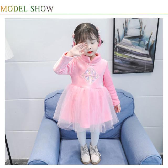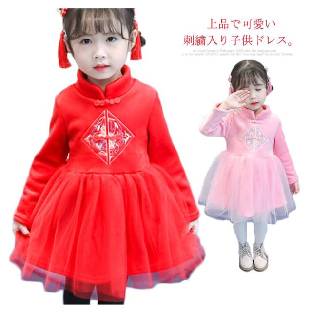 子供服 長袖ワンピース 秋冬 もこもこ ワンピース チャイナドレス 刺繍 チュールワンピース 子供ドレス 裏起毛 厚手 七五三 結婚式 入園式 卒業式 発表会