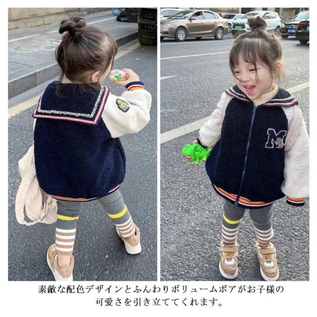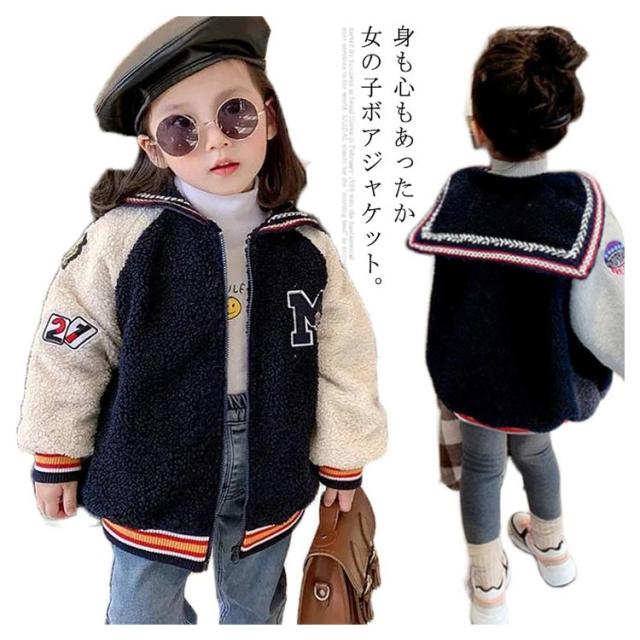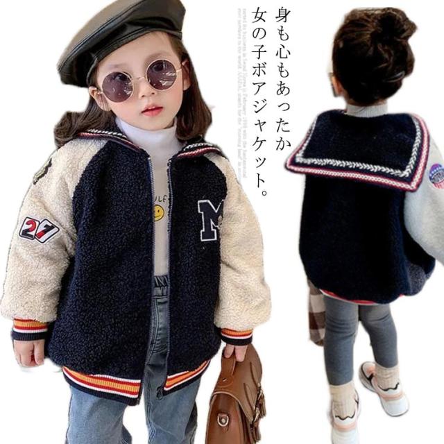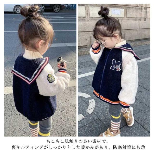 ベビー服 アウター ボアコート ジャケット ジャンパー セーラー襟 ライン入り 女の子 子供服 キッズ 裏キルティング 80 90 100 110 120 130 140 ブルゾン