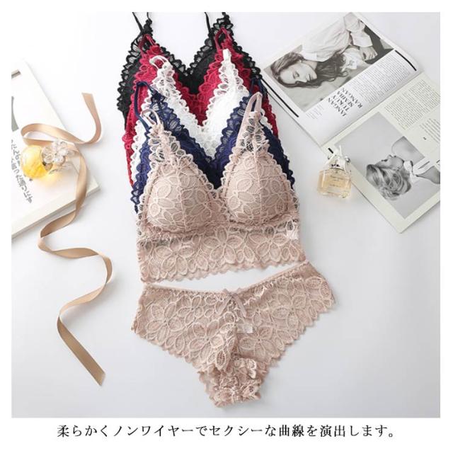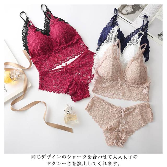 送料無料 ブラショーツセット ブラジャー 総レースブラ ショーツ 上下セット 下着 レディース 女性 インナー ノンワイヤー バストアップ セクシー レース レースショーツ 究極のバスト 谷間 脇肉 美背 薄手 お洒落 通気性 可愛い