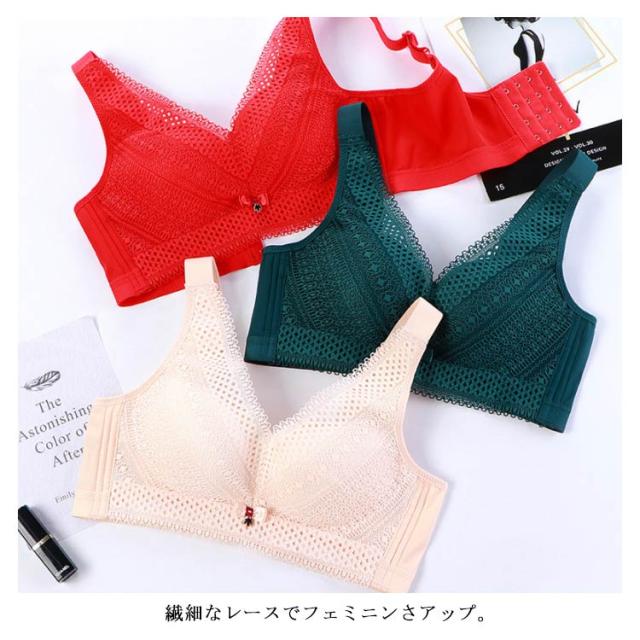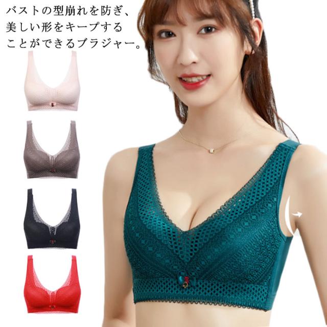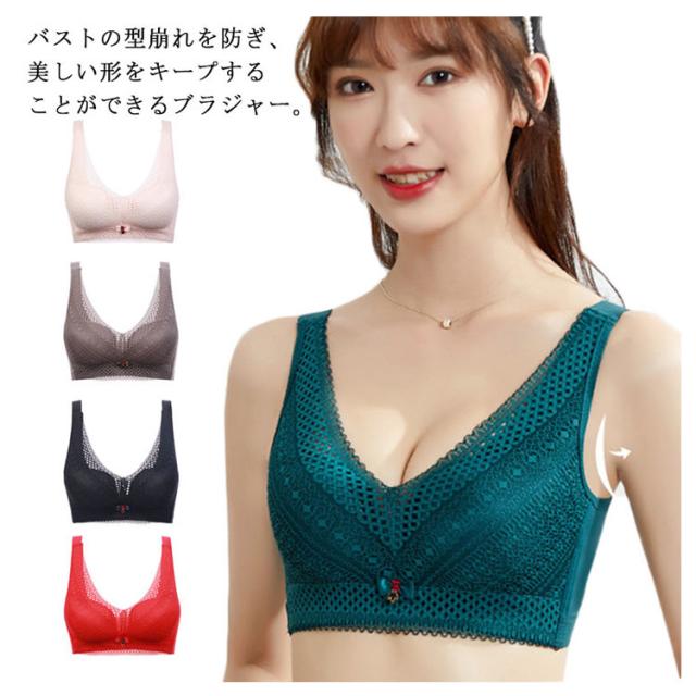 送料無料 ノンワイヤー ブラジャー レースブラ ブラジャー 寄せブラ 育乳ブラ 補正下着 美胸 インナー レース つけ心地 大きい胸 バストアップ 胸チラ 補正 補正下着 アンダーウエア 睡眠用ブラ 谷間メイク 軽量 薄手