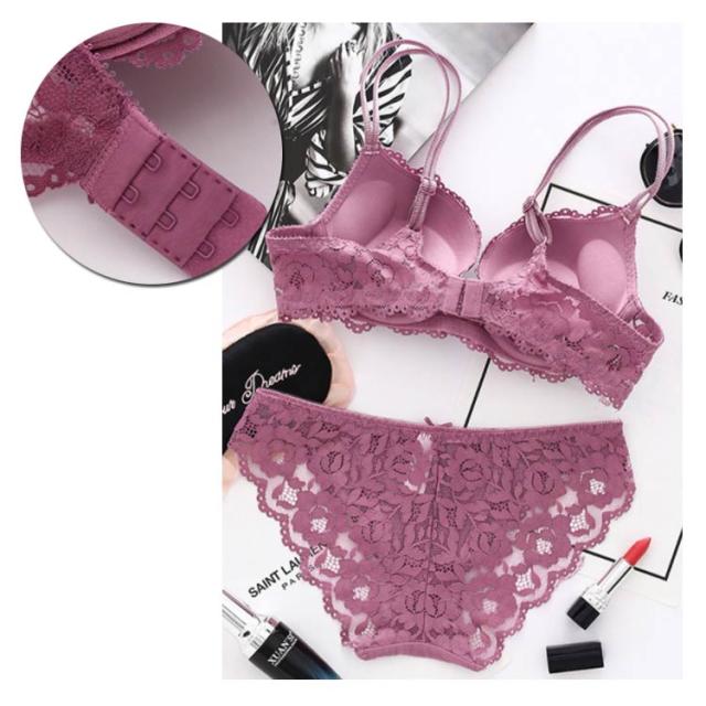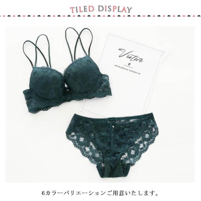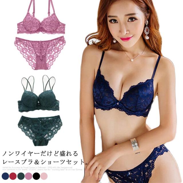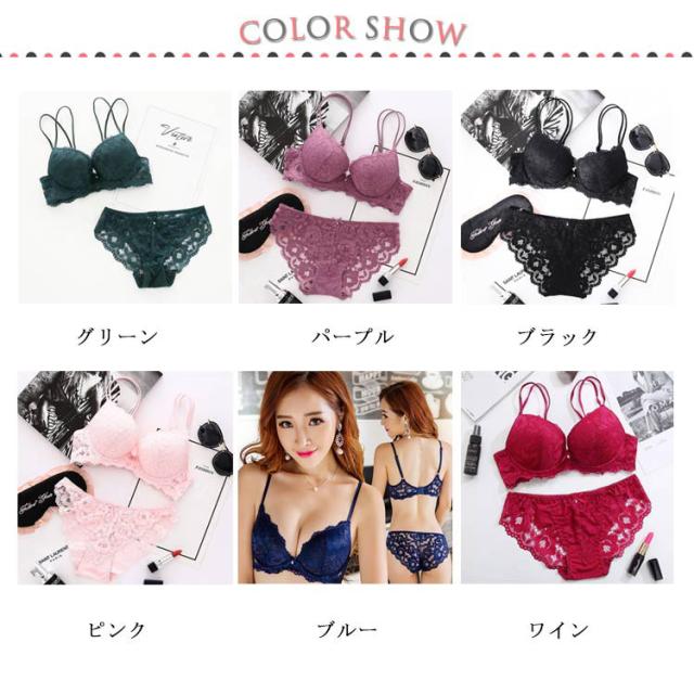 | セクシーなレースの施しが魅力的なセット。 ワイヤーレス様式で窮屈感なくて着用できます。 6カラーバリエーションご用意いたします。 | |