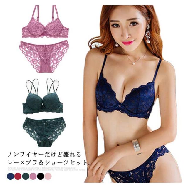 送料無料 ブラジャー ショーツ セットアップ レディース 脇高 豪華 ノンストレス ブラジャー バストアップ 胸盛れる 総レース ブラ&ショーツ ブラセット 3/4カップ 下着 谷間メイク 育乳ブラ セクシー 薄手 上品