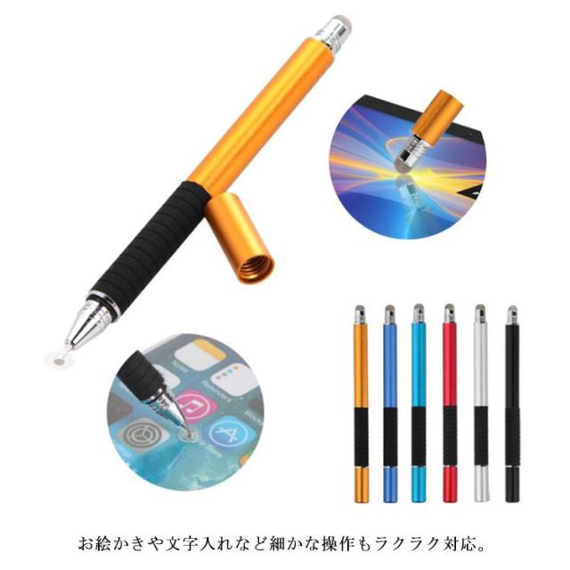 送料無料 タッチペン 2way スマホ スタイラスペン タブレット スマートフォン android iOS iPad iPhone 対応 極細 絵描き用 イラスト ゲーム 円盤型 書きやすい