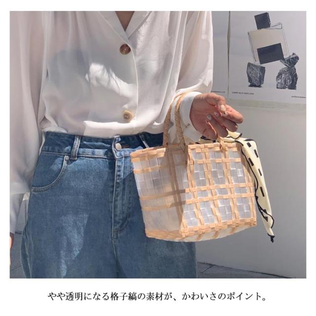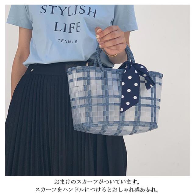 かごバッグ トート バスケット レディース ランチバッグ スカーフ付き 格子縞 透明 A4 大きめ かわいい おしゃれ ナチュラル 大容量 シンプル 軽量 春 夏 送料無料