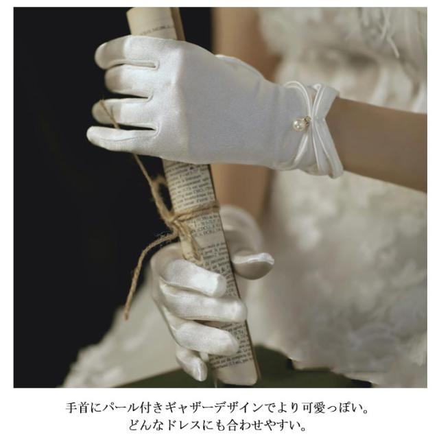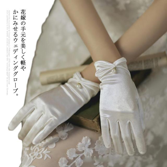 ウェディンググローブ ショート ウェディング グローブ ビジュー シルク オーガンジーグローブ レディース 女性用 パール ギャザー アクセサリー ウェディングドレス 結婚式 花嫁 手袋 送料無料