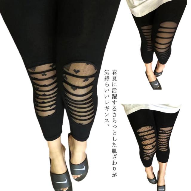 ダメージメッシュ加工 レギンス レディース 7分丈レギンス レギパン スパッツ 七分丈 タイト 美脚 黒 ダメージ加工 大きサイズ 春夏 夏 おしゃれ 女性
