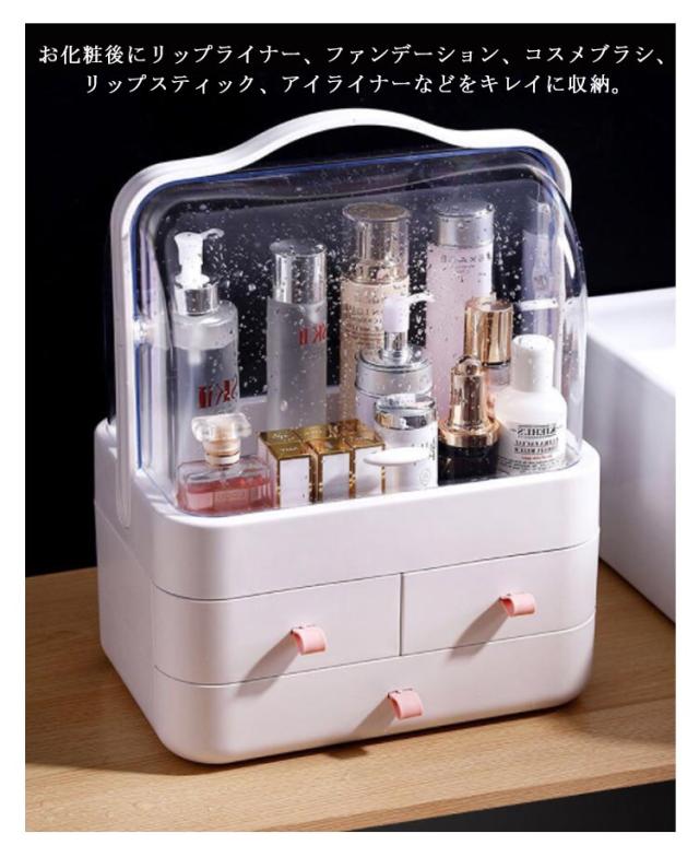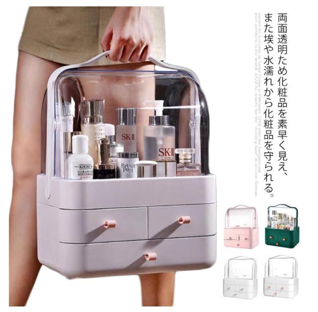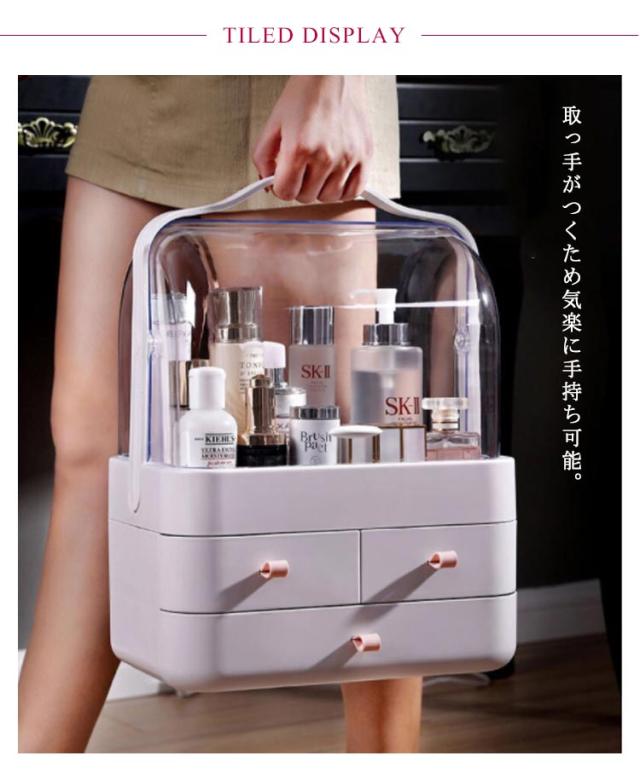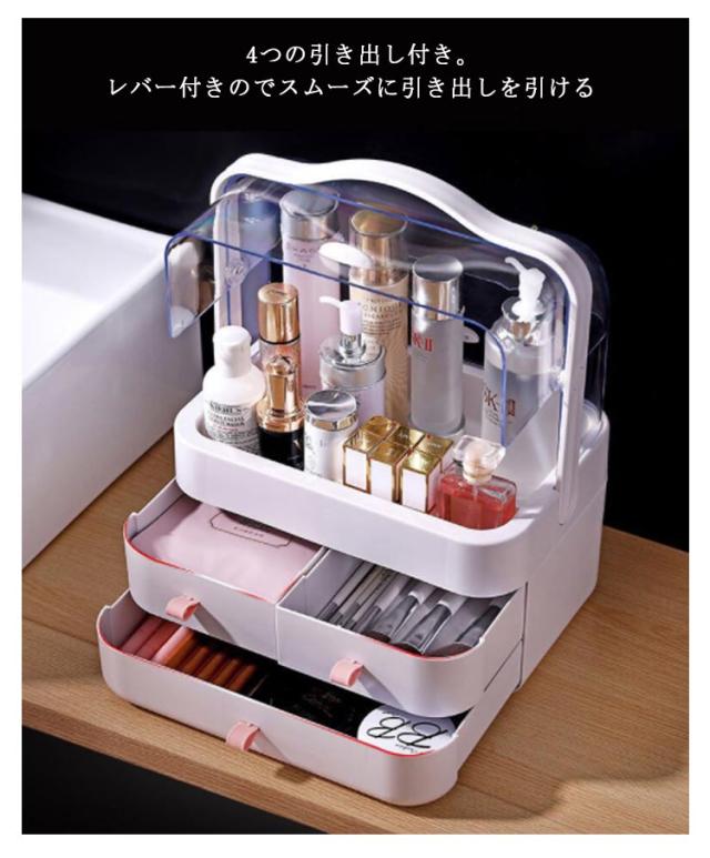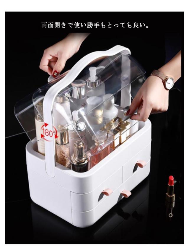 メイクボックス 化粧品収納ボックス 大容量コスメボックス 引き出し 持ち運び コスメ収納 メイク収納 化粧品入れ 小物入れ 卓上 浴室 洗面所 収納 透明 防塵 防水