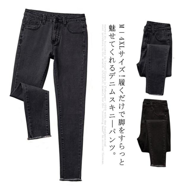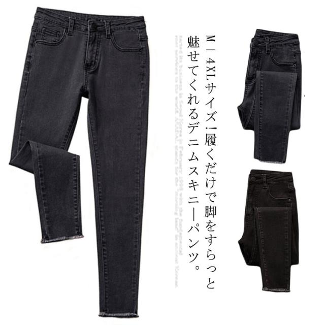 M−4XLサイズ!カットオフ スキニーデニムパンツ スキニーパンツ レディース デニムパンツ スキニー ジーンズ デニム 9分丈 美脚 春秋 おしゃれ 大きサイズ 送料無料