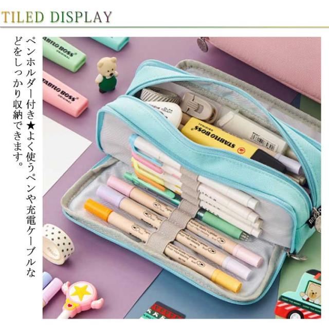 | 【商品名】ペンケース 【サイズ】サイズ表 【素材】ポリエステル 【特徴】驚異の収納力が魅力!大きく開くことができるので、中身がよく見え、ペンの選びや出し入れがとてもやすいです。お気に入りの文房具をたっぷり詰め込めこんで、楽しく勉強しよう!ペンケースだけでなく、お化粧ポーチとしても使えちゃう!スマホのアクセサリーなども収納可能! | |