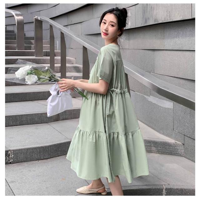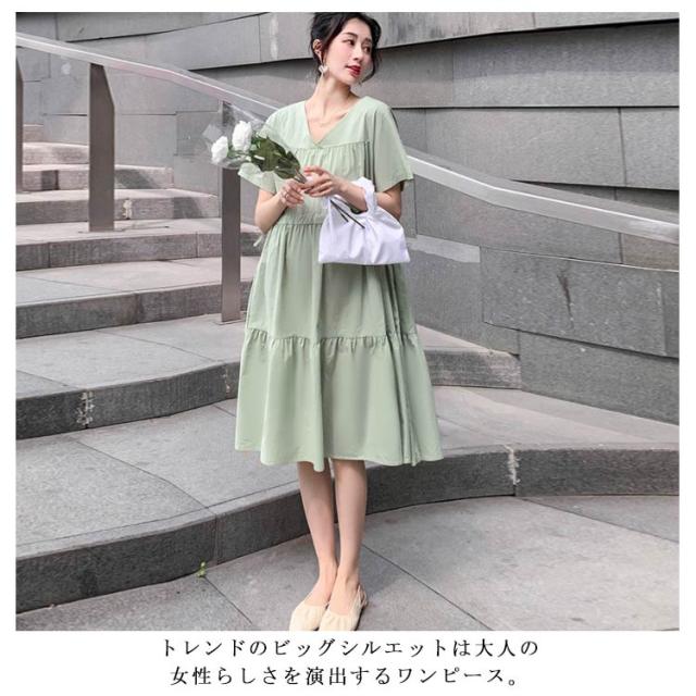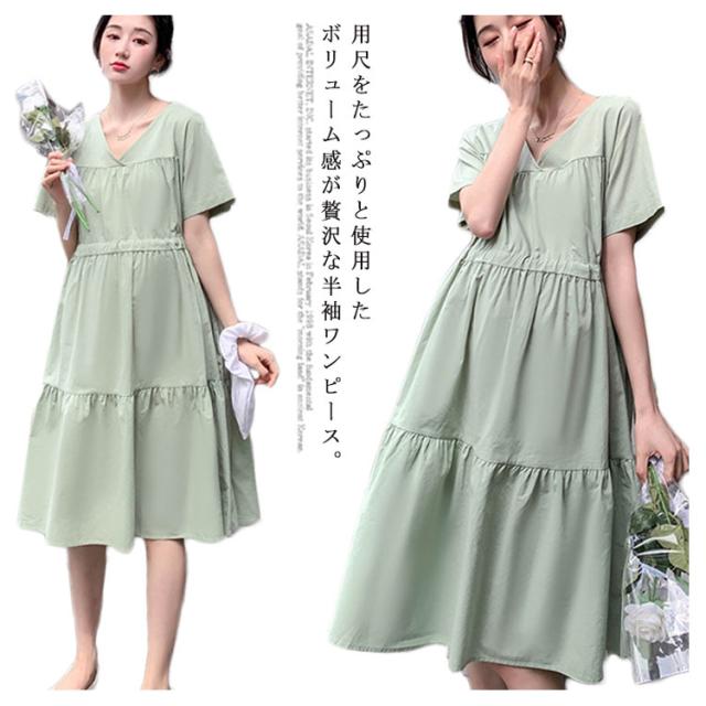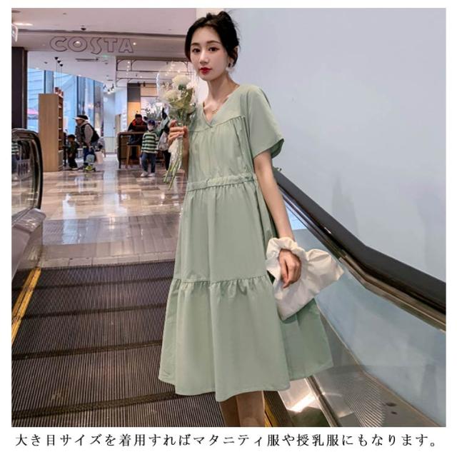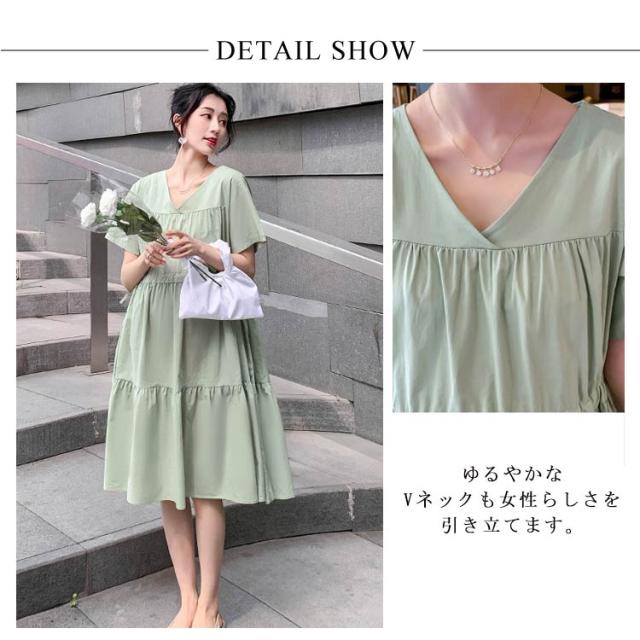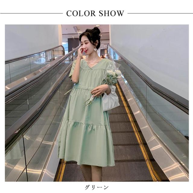 送料無料マタニティワンピース ワンピース ミモレ丈ワンピース 半袖 春夏 レディース マタニティ 妊婦服 Vネック フレア ゆったり 大きいサイズ シンプル カジュアル おしゃれ 産前産後 お出掛け かわいい
