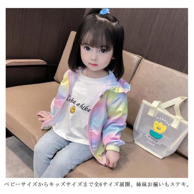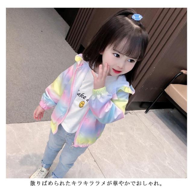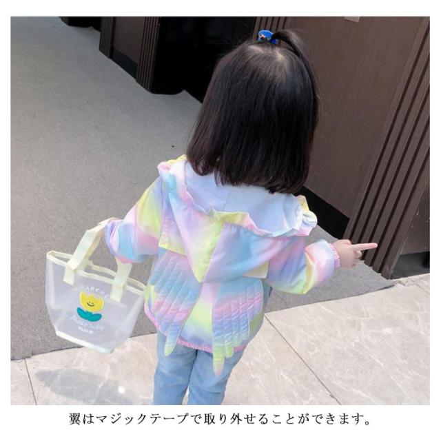 翼付き アウター フード付 ジャケット 子供服 フリル レインボー 女の子 キッズ 可愛い ウインドブレーカー 春服 ジップパーカー 秋 80cm 90cm 100cm 110cm 120cm 130cm