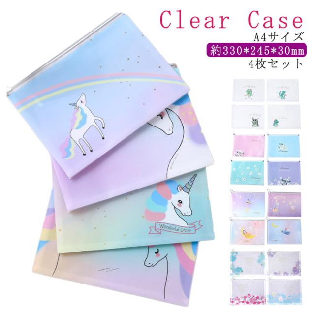 4枚セット クリアケース クリアファイル A4 ファスナー付 書類 ファスナーケース ジップケース ファイルケース ポケットファイル トラベルポーチ ファイル ポケット 書類整理 学生 オフィス用品 学校 文房具 事務用品 送料無料