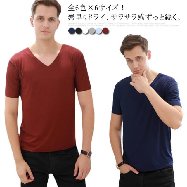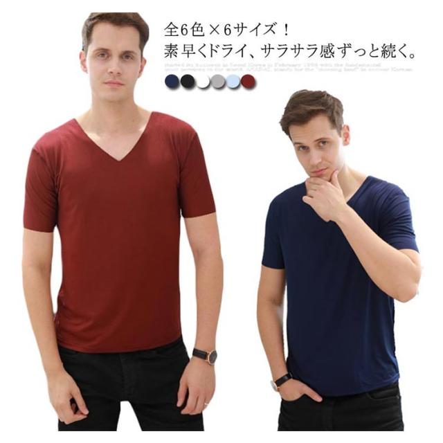 全6色×6サイズ!Vネック半袖Tシャツ メンズ Vネック 半袖 Tシャツ インナー シームレスtシャツ 半袖tシャツ メンズ 無地tシャツ Vネックtシャツ フィット 誕生日プレゼント 彼氏 父 ギフト 記念日 大きサイズ 夏服 夏物 送料無料