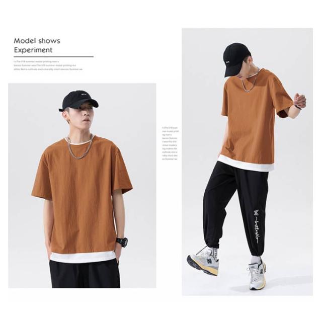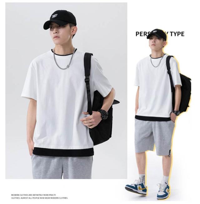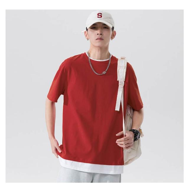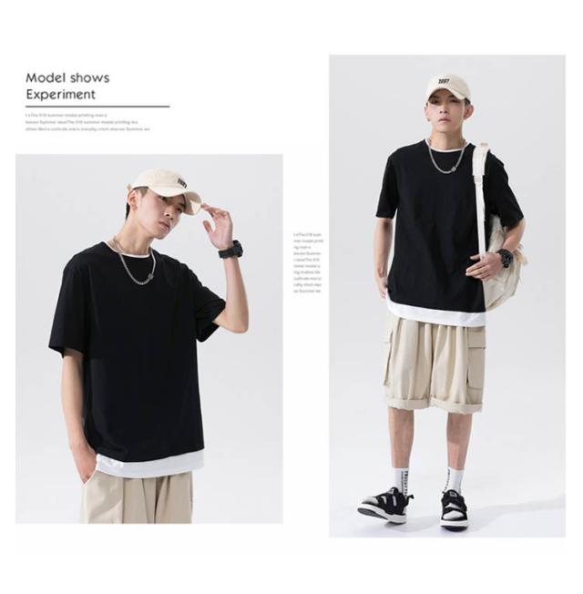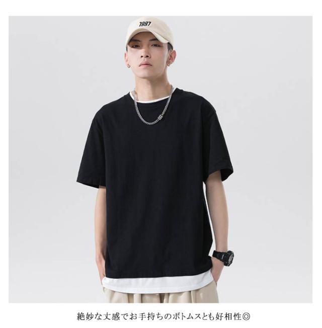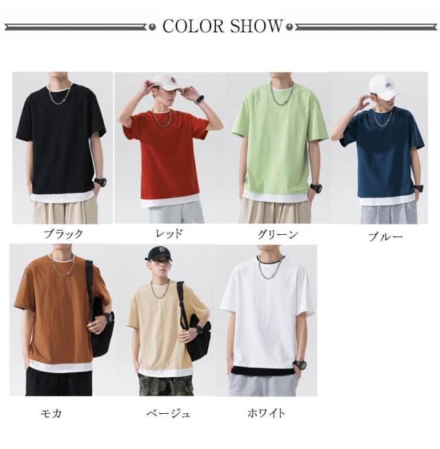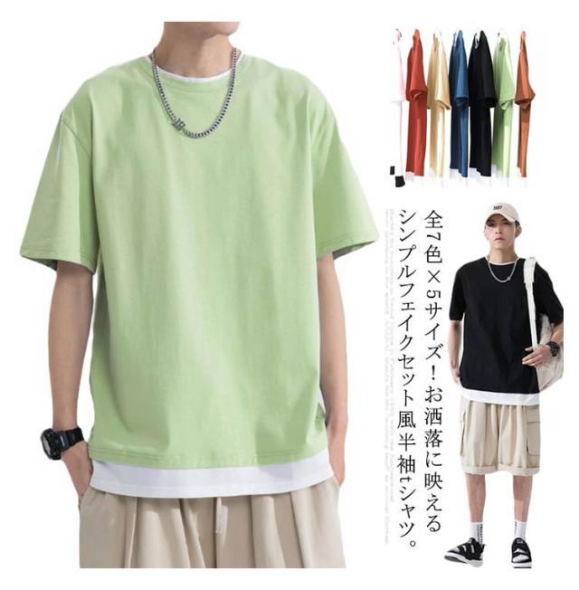 全7色×5サイズ!メンズtシャツ 重ね着 フェイクセット風 tシャツ メンズ 半袖tシャツ カットソー トップス ラウンドネック 春 夏 ファッション カジュアル 送料無料