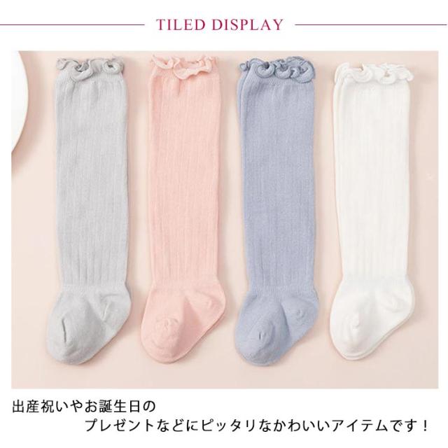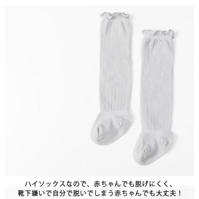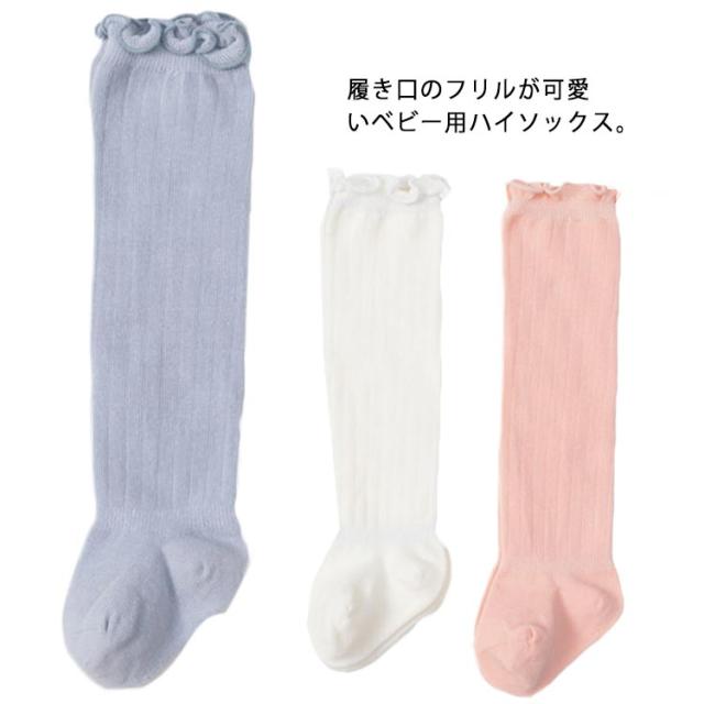 | 履き口のフリルが可愛いベビー用ハイソックス。 肌触りが良い、伸縮性も良くのソフトな素材感で足にフィットする快適な履き心地! ハイソックスなので、赤ちゃんでも脱げにくく、靴下嫌いで自分で脱いでしまう赤ちゃんでも大丈夫! シンプルな無地のソックスなのでどんな服にも合わせやすく、男女問わず使用できます。 出産祝いやお誕生日のプレゼントなどにピッタリなかわいいアイテムです! | |