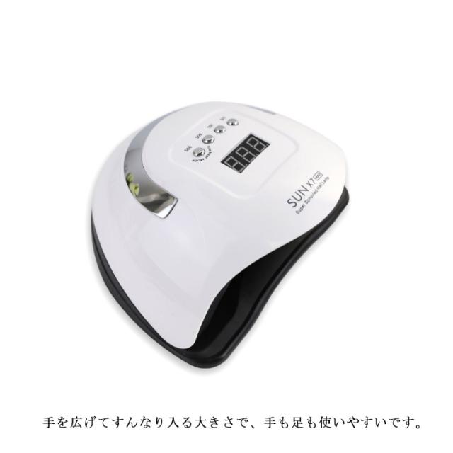 | 180wのハイパワーネイルライト。 短時間でサラッと硬化できてテンション上がりました。 手を広げてすんなり入る大きさで、手も足も使いやすいです。 ローヒートの機能が付いているので、熱くなることは差し控えます。 自動でライトが点くのもとても便利です。 | |