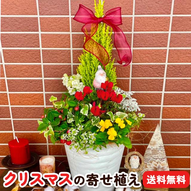 クリスマス の寄せ植え ( ゴールドクレスト / シクラメン / アリッサム / ビオラ / アイビー ( ヘデラ ) など ) 【 送料無料 】 クリスマスツリー ギフト 飾り ミニ 玄関