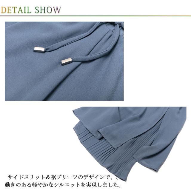 | フェミニンムードを漂わせるシフォンスカーチョ。 素材が柔らかでたっぷりのシフォン生地がひらひらと歩くたびにきれいに揺れます。 肌に張り付かず裏地で重なっている部分も涼しいので暑い季節も爽やかに着こなせます。 ウエストゴム仕様なのでとっても履きやすいし、優しい伸縮性で様々な体型の方にご満足いただけます。 サイドスリット&裾プリーツのデザインで、、動きのある軽やかなシルエットを実現しました。 ゆったりとしたサイズ感と柔らかい素材感、着疲れしないリラックスできる着心地です。 | |