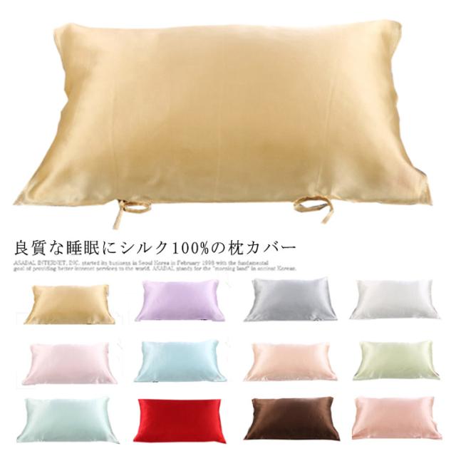 シルク 枕カバー 両面 紐 洗える ピローケース 50×75cm 送料無料 おしゃれ 可愛い 冷感 絹 枕 涼しい 保湿 美容まくらカバー