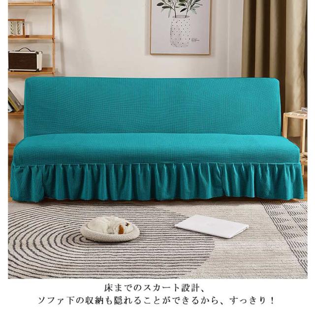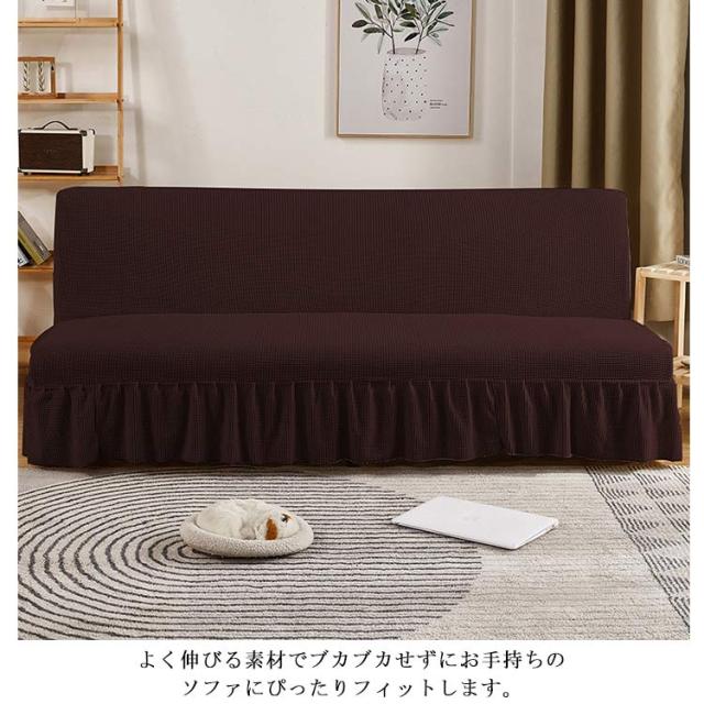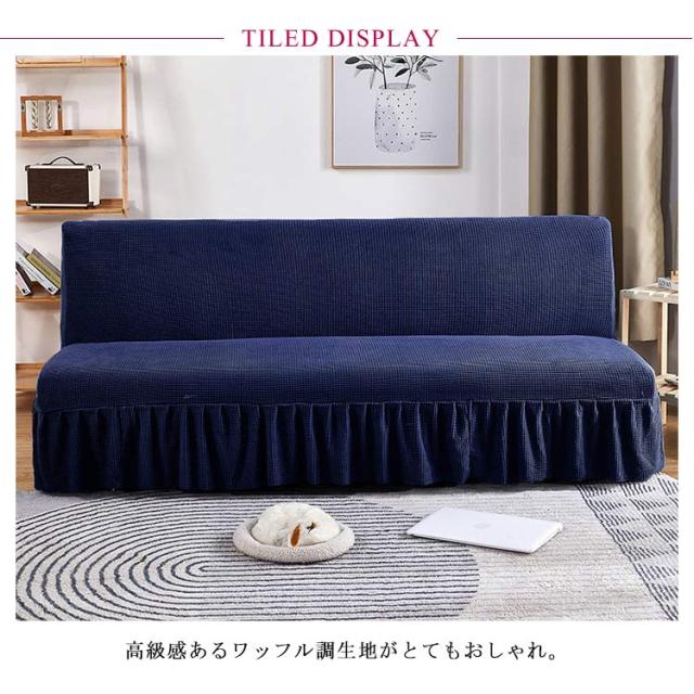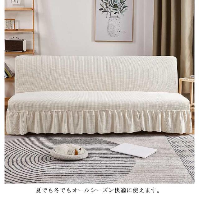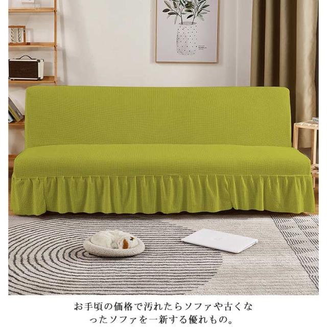 ソファーベッドカバー スカート付き ソファーカバー 3人掛け 2人掛け 肘なし 無地 伸縮 ソファ 替えカバー 洗える 北欧 ワッフル 模様替え おしゃれ ふんわり柔らい