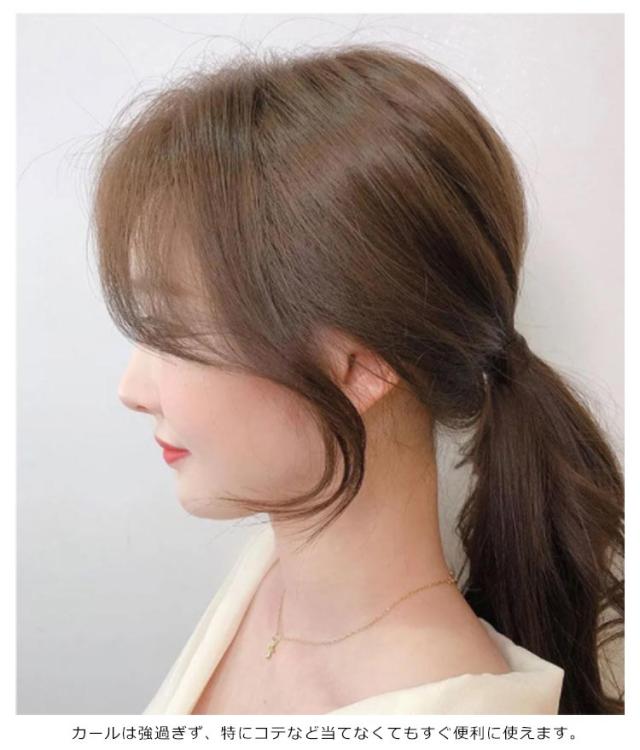 | 前髪ポイントウィッグの2枚セットが発売中! お好きなところにワンタッチでとめるだけで手軽にボリュームアップします。 25cmの長めなので、ななめに流す前髪もつくれふんわり感もできます。 うねった前髪を少し隠しつつ小顔効果も抜群!はさみで長さ調整することもできます。 カールは強過ぎず、特にコテなど当てなくてもすぐ便利に使えます。 | |