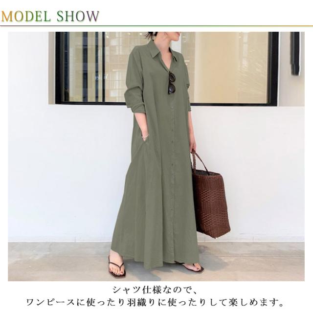 【送料無料】シャツワンピース レディース 春夏 シャツワンピ 羽織り ロング丈 マキシ丈 ロングシャツ 薄い 体型カバー ゆったり ラフ 長袖 シャツ シンプル 2way 着痩せ ゆるシャツ