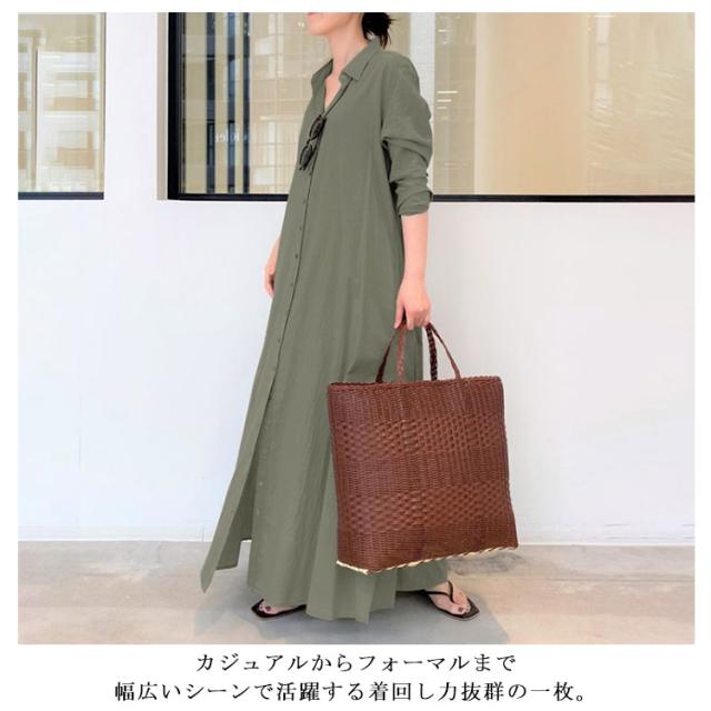 | 着るだけで洗練された大人の女性らしいこなれ感たっぷりのロング丈シャツワンピース。 シャツ仕様なので、ワンピースに使ったり羽織りに使ったりして楽しめます。 カジュアルからフォーマルまで幅広いシーンで活躍する着回し力抜群の一枚。 ルーズなシャツスタイルで生地に厚みがあるので広がりすぎず、すっきり着られます。 気になるヒップ周りがすっぽり隠れるロング丈は、気になる体型カバーもしてくれます。 | |
