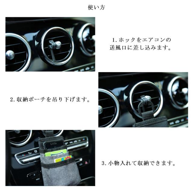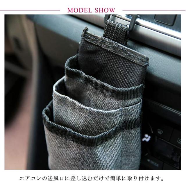 | 車用吊り下げ収納ポケット。 エアコンの送風口に差し込むだけで簡単に取り付けます。 コンパクトなのに、いろいろなポケットあり、見た目以上の大容量。 スマホや小物などをすぐに取り出せる実用的な収納ポケット。 底にスマホ充電対応のためあながついています。 | |