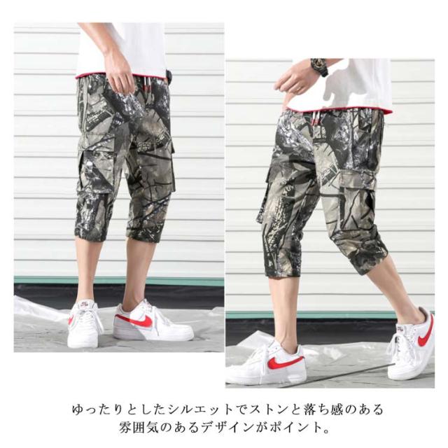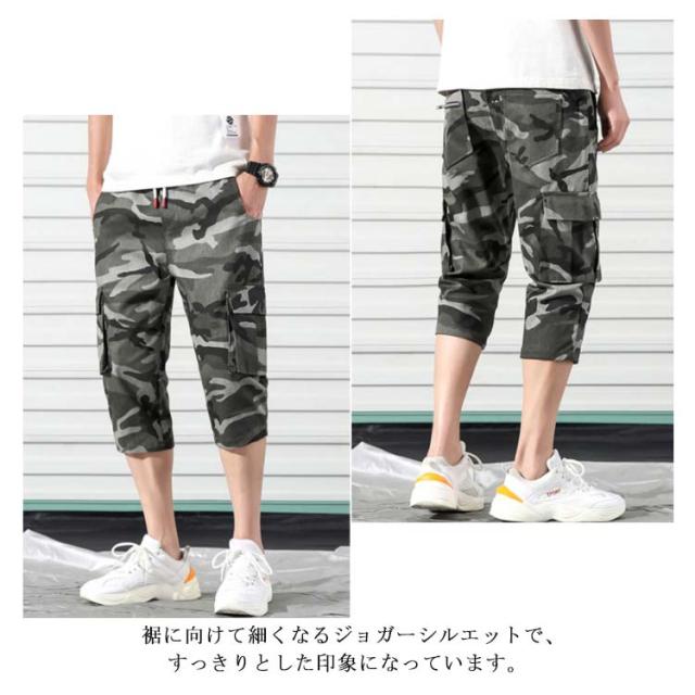 全11色×7サイズ!7分丈 迷彩パンツ クロップドパンツ メンズ ジョガーパンツ カジュルパンツ サルエルパンツ イージーパンツ ハーフパンツ ウエストゴム 春夏 大きサイズ ボトムス メンズファッション